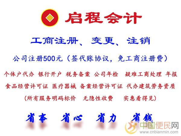 新蔡启程会计专业代办工商,注册公司,代理记账报税,公司变更注销,资质办理,商标注册,网站建设。www.cnbianmin.com